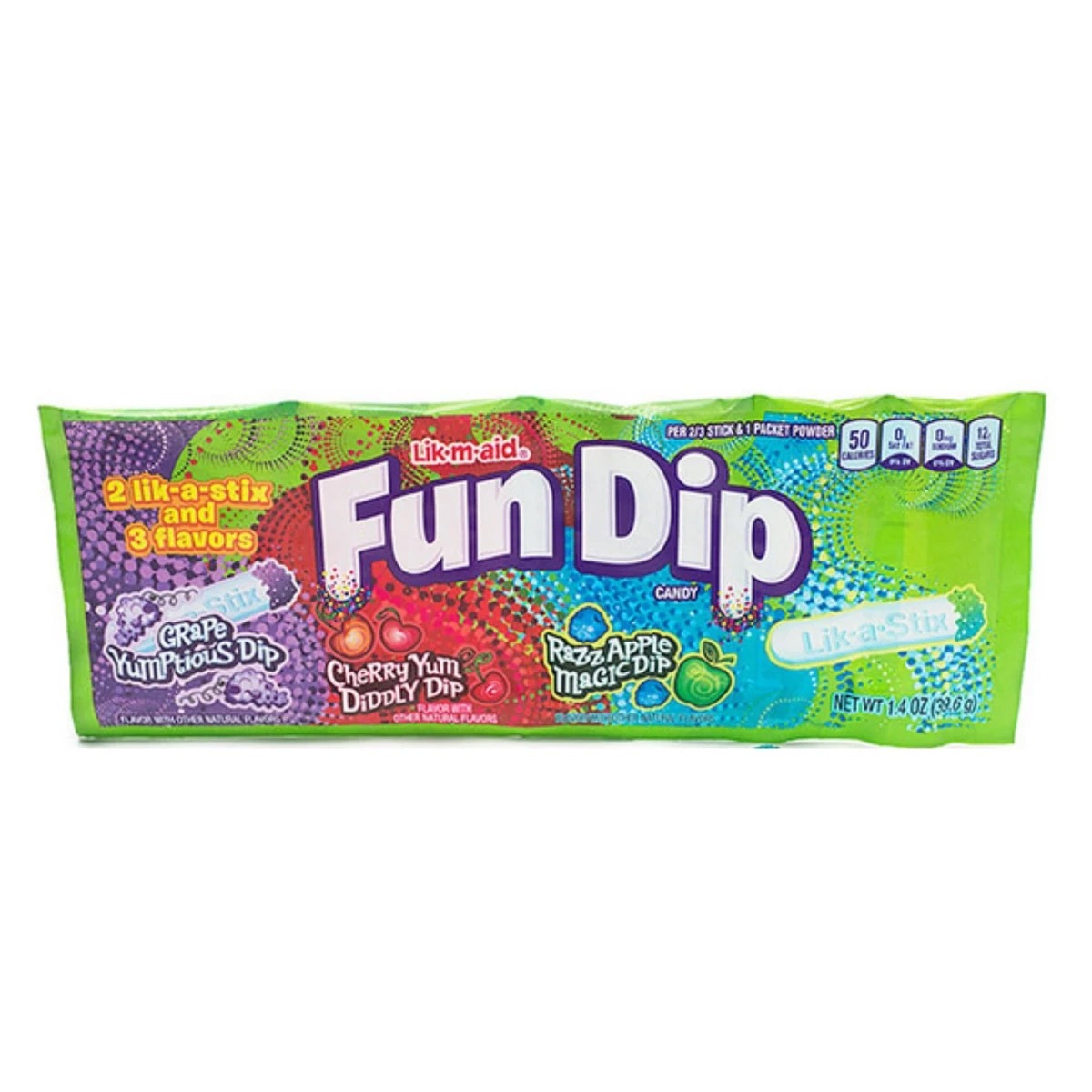 The original Fun Dip candy you love with not one, not two, but three scrumptious flavour dips in Grape Yumptious, Cherry Yum Diddly, and RazzApple Magic!