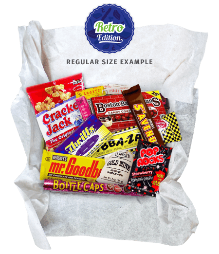Treatsbox candy gift boxes come in five great editions: Original (a bit of everything), Retro (candy time machine), Sour (pucker up), Chocolate, and Wonka (straight from Wonka’s factory).